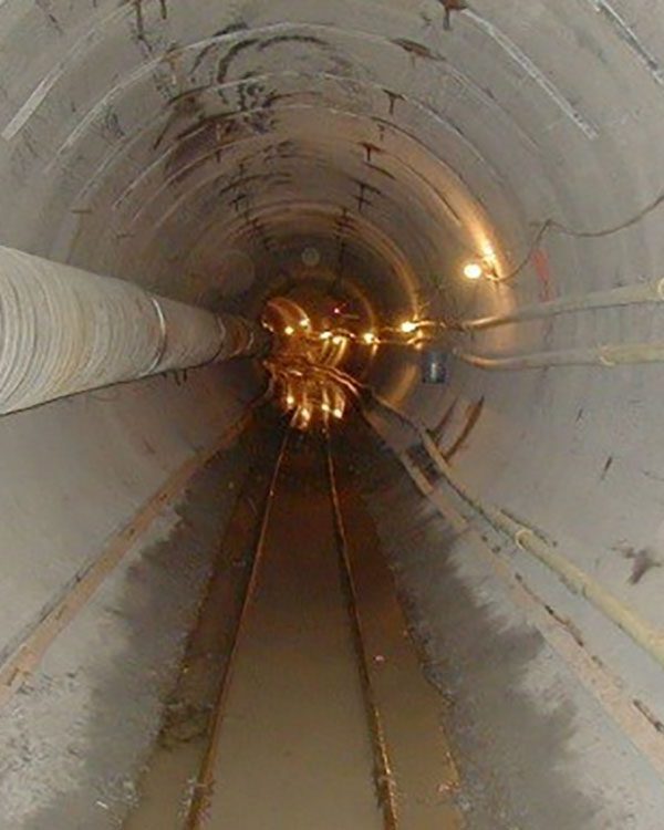 Completed in 2003 by Mole Constructors, the Mill Creek Interceptor Contract 1 project consisted of approximately 12,900 linear feet of 12 ft 8-inch diameter tunnel excavated using a 152-inch Lovat Tunnel Boring Machine (TBM). Approximately 8,834 linear feet of the tunnel was in shale formation and supported using rock dowels and channel straps. The remaining 3,362 lineal feet were excavated in soft ground and internal steel ribs and wood lagging were used. The rock portion of the tunnel received a 120-inch cast-in-place concrete final liner and 108-inch cast-in-place concrete was used in the soft ground section.