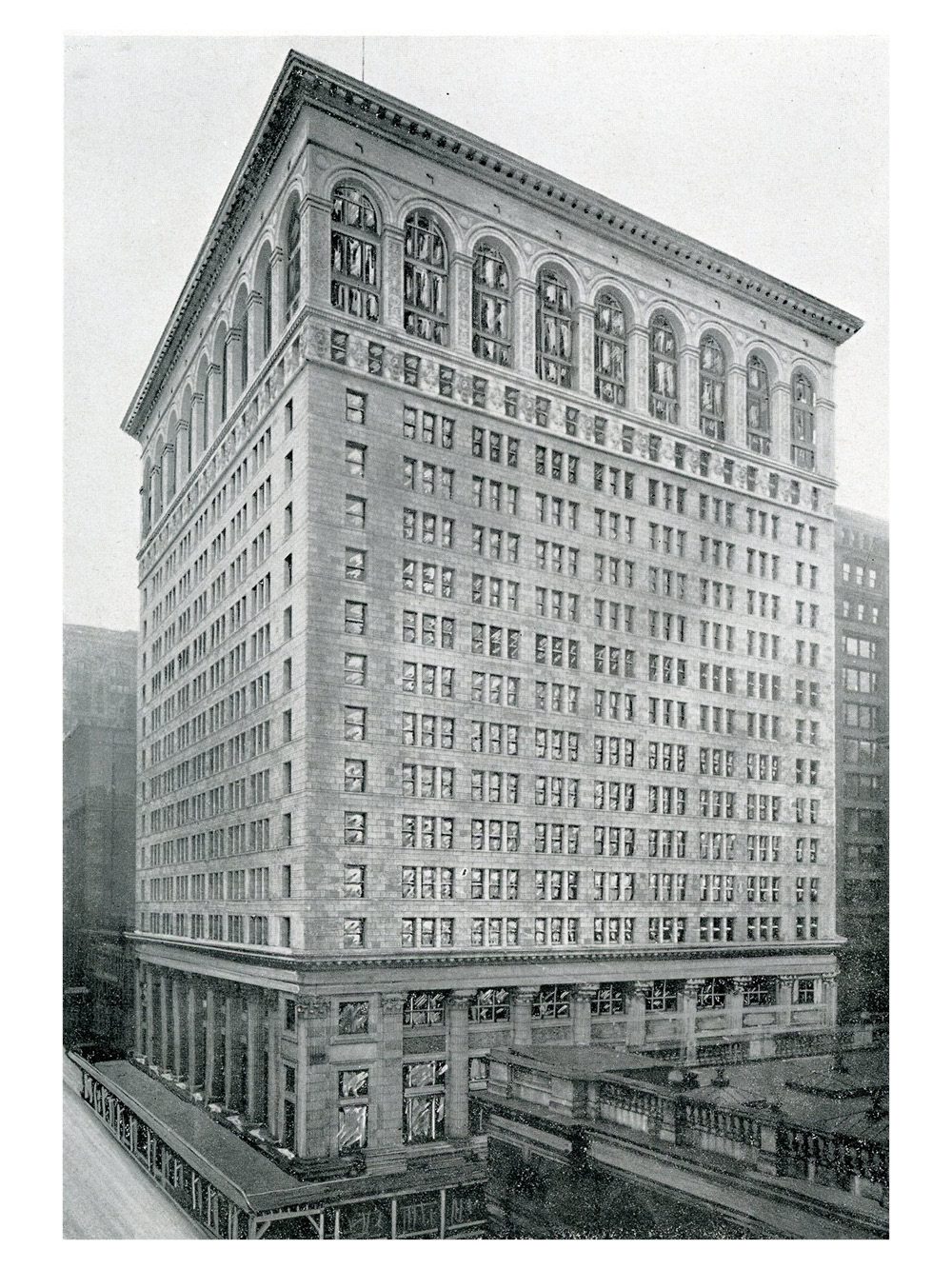 Structural Steel Provided by American Bridge Company. Weight of Structural Steel – 18,600,000 pounds Project Details Owner: Commercial National Bank Location: Chicago, Illinois, United States Performed as: American Bridge Company Completion Date: 1907