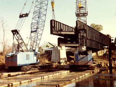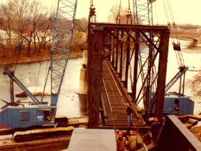 Completed in 1981 by American Bridge, the Norfolk Southern Railway Bridge No. 495 project consisted of replacing a through truss with a through-plate girder over the Wabash River. The old truss was rolled into the river for demolition, and new girders were launched in a 72-hour change-out.