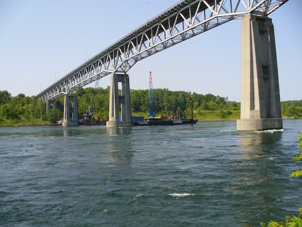Completed in 2011 by American Bridge, the North Channel Bridge Three Nations Bridge project was the first phase of replacing the existing bridge. Work included constructing three in-river piers with drilled shaft caissons, concrete columns, and conventional pier caps. Drilled shafts were socketed into bedrock, with subcontractor Case Foundation performing the caisson work.