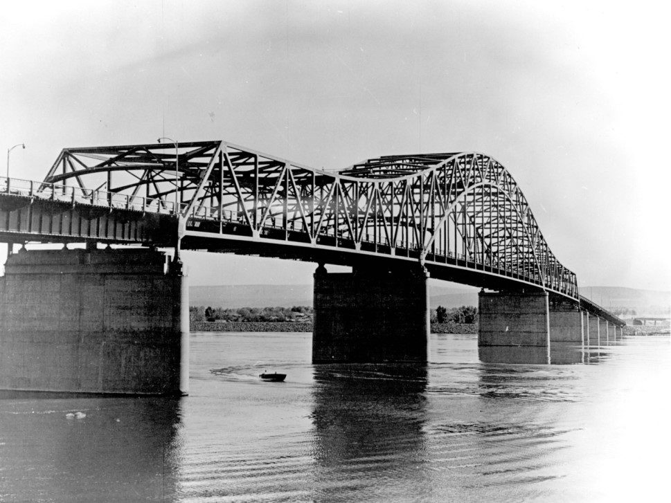 Completed in 1954 by American Bridge, the Pasco Bridge over the Columbia River project consisted of fabricating and erecting the superstructure for a 2,450-foot tied-arch truss bridge with a 520-foot main span and 325-foot side spans. The project included cantilever and suspended construction for the approaches, as well as lighting and deck work. The bridge spans the Columbia River, connecting Pasco, Washington and Kennewick, Washington.