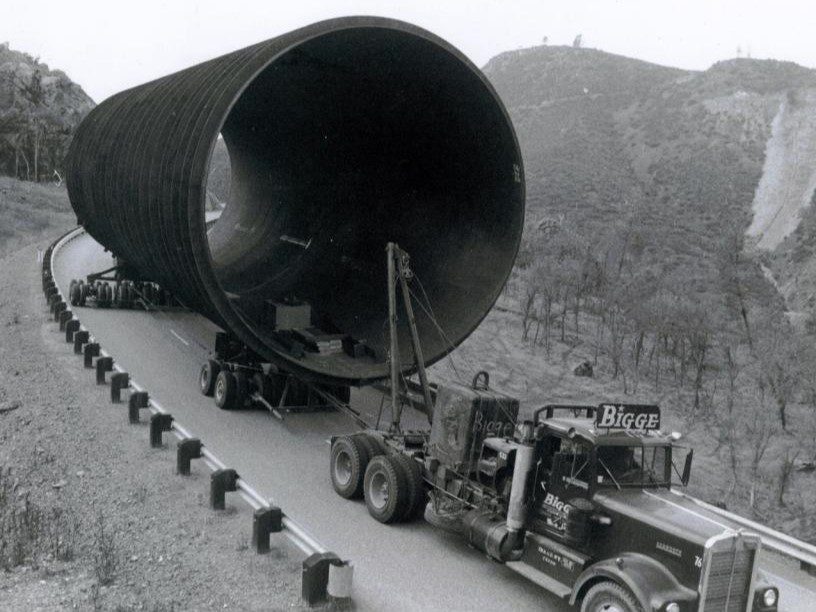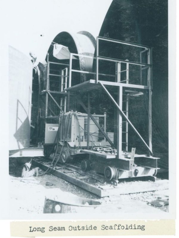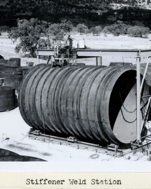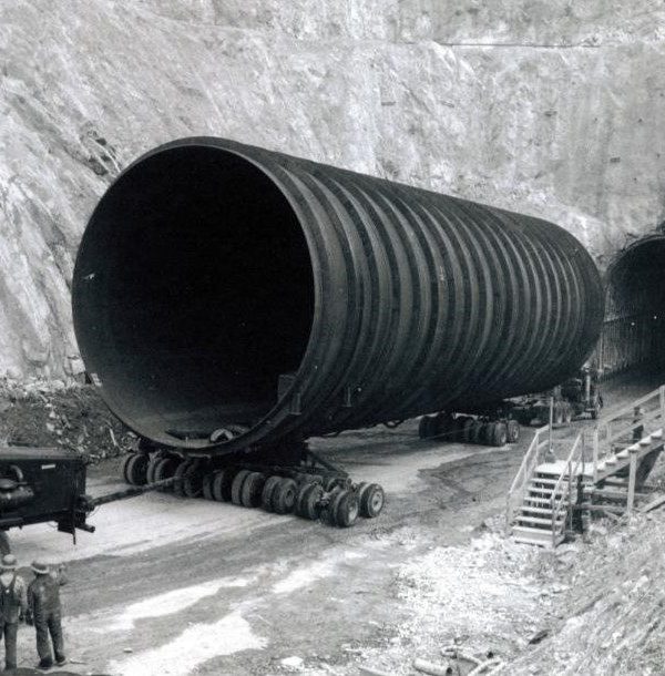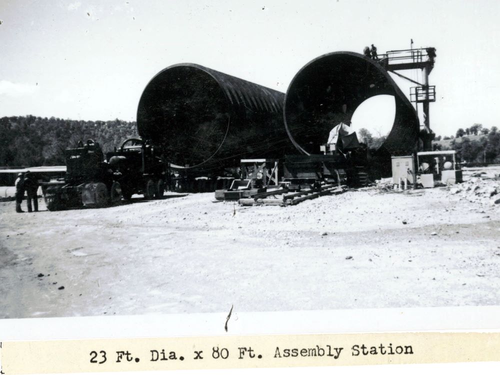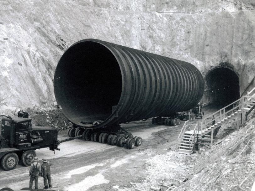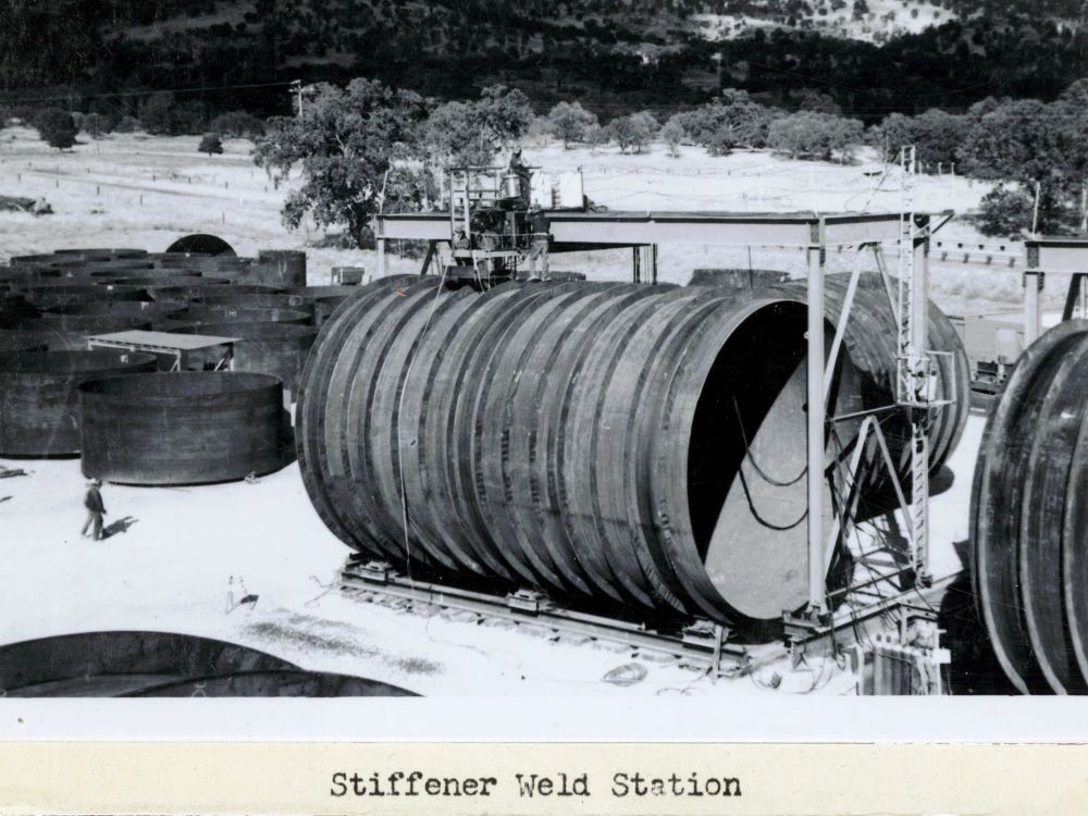 Completed in 1978 by American Bridge, the Power Plant and Appurtenances – New Melones Lake project consisted of field fabricating and erecting a surge tank liner starting at the surge tee approximately 550 feet underground. The surge liner, approximately 23 feet in diameter, projected 70 feet horizontally from the tee and continued to line the surge shaft for another 200 feet vertically. A surge tank, approximately 55 feet in diameter, was then erected on top of the surge shaft, resulting in a total height above ground of approximately 130 feet. Several other components, such as the power penstocks, were also field fabricated and erected in the powerhouse area.