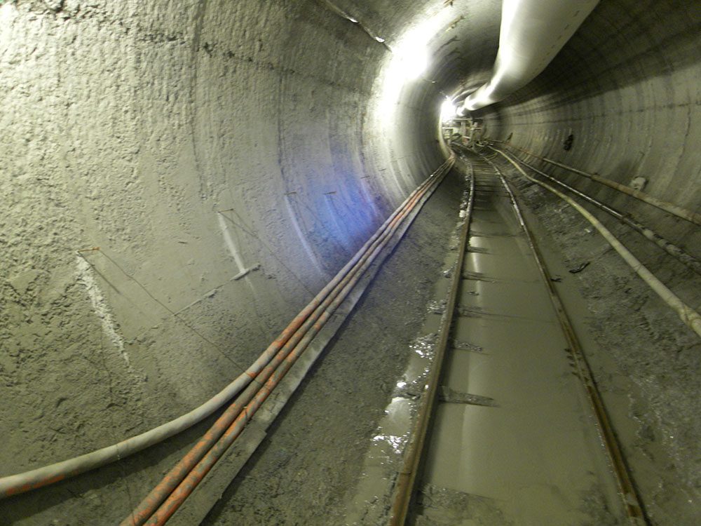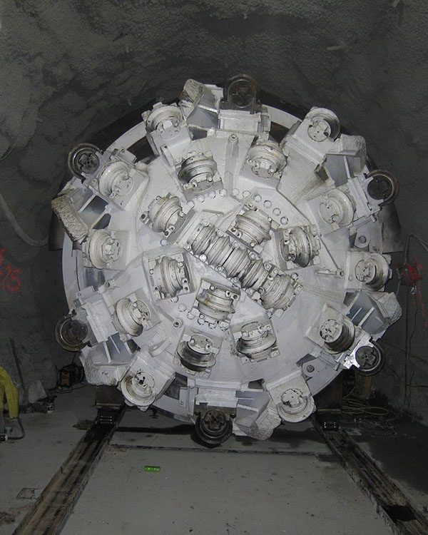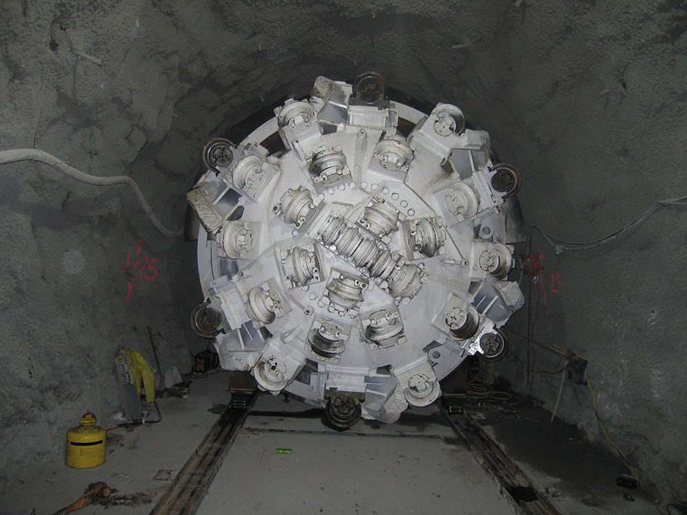 Completed in 2011 by Mole Constructors, the Riverbank Filtration Tunnel and Pump Station project included a work shaft, 7,763 linear feet of 12-foot diameter tunnel for water conveyance, four collector well systems, and a 65 MGD pump station. The work shaft was supported by a 41-foot diameter slurry wall through saturated soft ground, followed by conventional blasting methods to a depth of 187 feet.