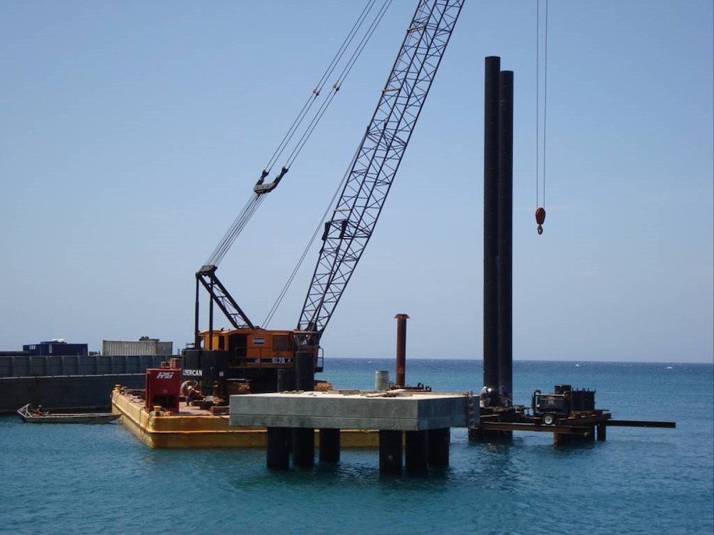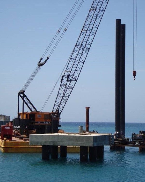Completed in 2010, the $23.5M Roatan Cruise Terminal project included two cruise ship berths with pile-supported decks, berthing and mooring dolphins, and a large upland platform. Work was performed through American Bridge Honduras in partnership with Eterna S.A.