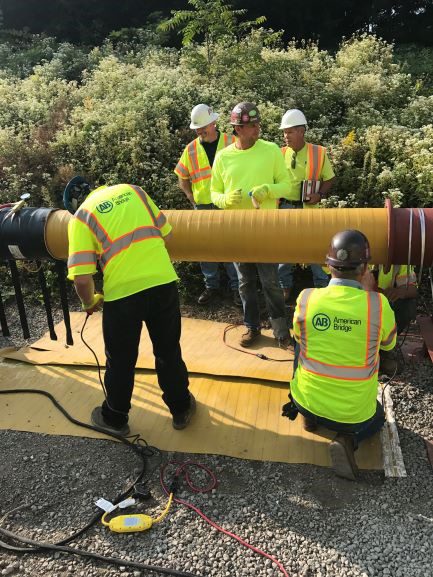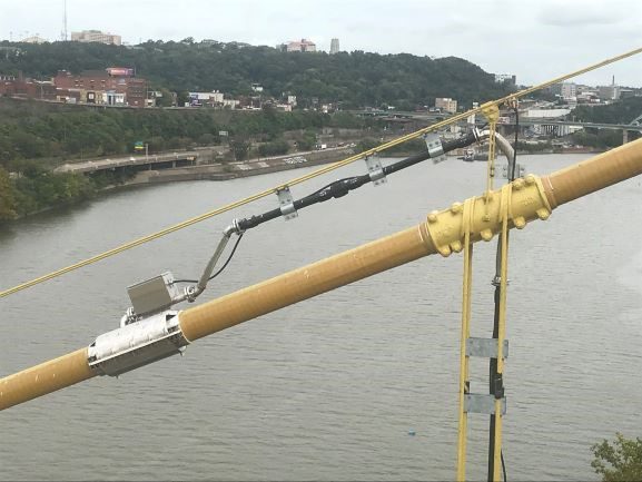 Project involved rehabilitation and dehumidification of a 1,275-foot suspension bridge. Scope of work included main cable and elastometric wrap installation, existing anchorage vault roof reconstruction, roadway and sidewalk reconstruction, concrete repairs, expansion dam replacement, main deck rehabilitation that included asphalt and water proofing membrane replacement, full repainting of the steel and other miscellaneous steel repairs to the superstructure.