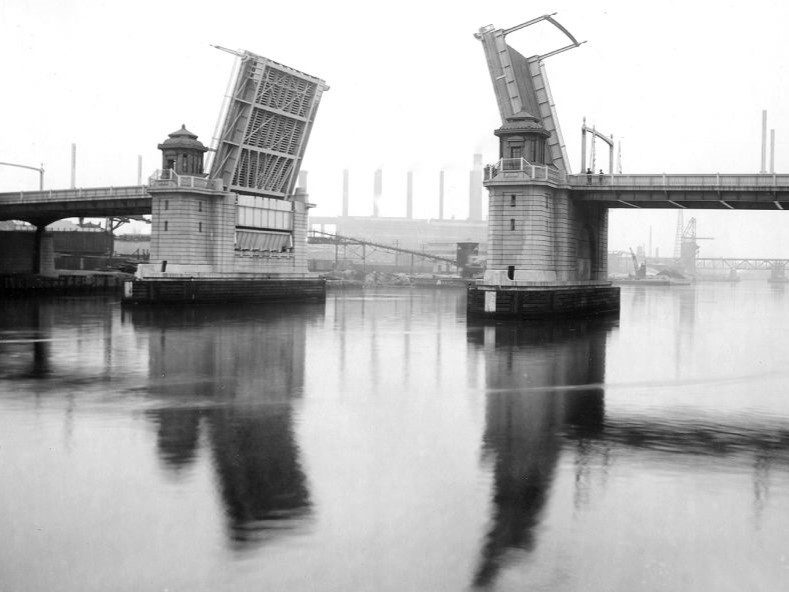 Completed in 1932 by American Bridge, the South Street Bridge project consisted of a double-leaf trunnion bascule bridge with a 280-foot main span.