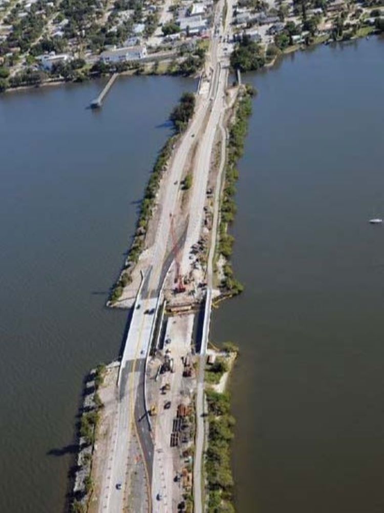 Completed in 2011, the SR 500/US 192 Relief Bridges Replacement Project consisted of the construction of 3 new at grade flat deck bridges on US 192 in Brevard County. These are relief bridges on the Indian River. This work was phased with temporary traffic and pedestrian bridges. Transition existing roadways to new bridges.
