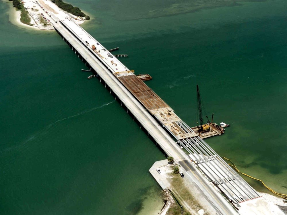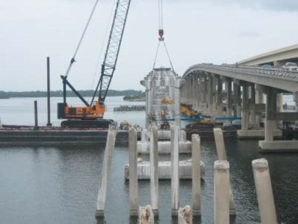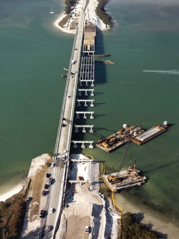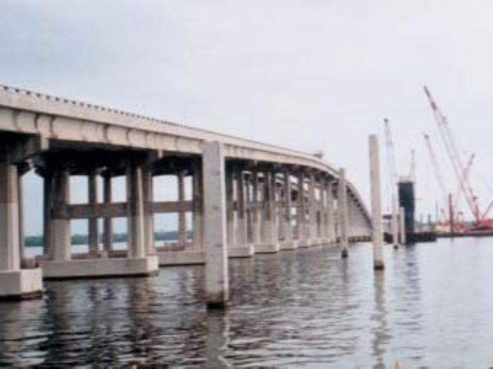 Completed in 2006, the SR 528 over the Indian River Bridge Replacement – High Rise Bridge Over the Intercoastal Waterway project consisted of the construction of 3,900 linear foot long and 95-foot-high major roadway and high-level bridge over the ICWW. This project consisted of the construction of a bridge over the Indian River in Brevard County. The scope of work included maintenance of traffic (MOT); erosion/sedimentation/turbidity control; stormwater management; prestressed concrete piling; sheet piling; cofferdams; sub and superstructure; mass grading/embankment; barrier walls; retaining walls; bank stabilizations; approach slab and roadway; curbing; sidewalks; guardrail system; underground power & signalization; jack & bore; pressure & gravity piping systems; grading; flexible paving; sodding; fencing; and drainage. This project was completed ahead of schedule.