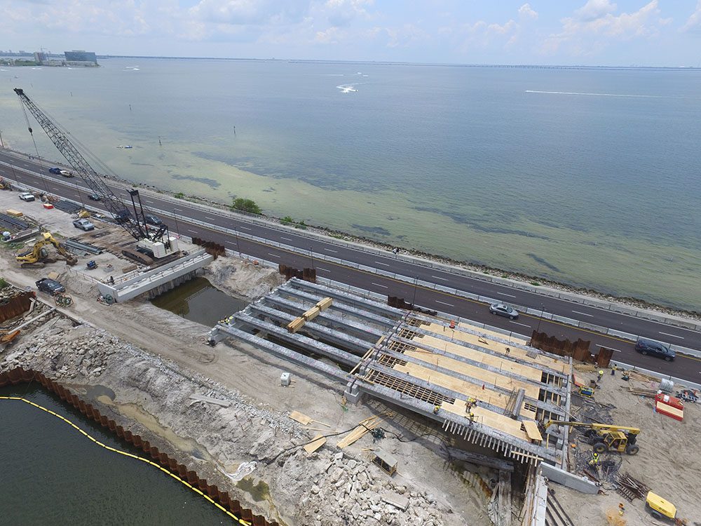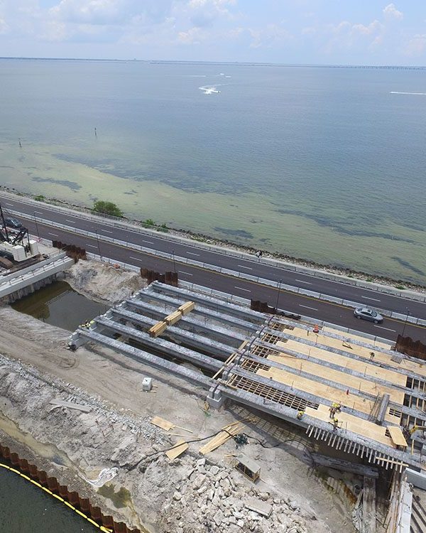 The SR 60 (Courtney Campbell Causeway) Old Tampa Bay Water Quality Improvement Project, completed in 2019 by Johnson Bros. Corporation, involved constructing a 229-foot bridge opening to significantly enhance water circulation in a portion of Old Tampa Bay. Located west of Ben T. Davis Beach, this new bridge section was essential for addressing water stagnation in the adjacent bay area, where restricted tidal flow had led to decreased water quality. Pollution from stormwater runoff and other sources had been accumulating, disrupting the bays natural filtration processes. The new bridge opening was designed to allow full tidal flow within a year of the projects start, restoring natural water movement and improving water quality in this critical habitat.