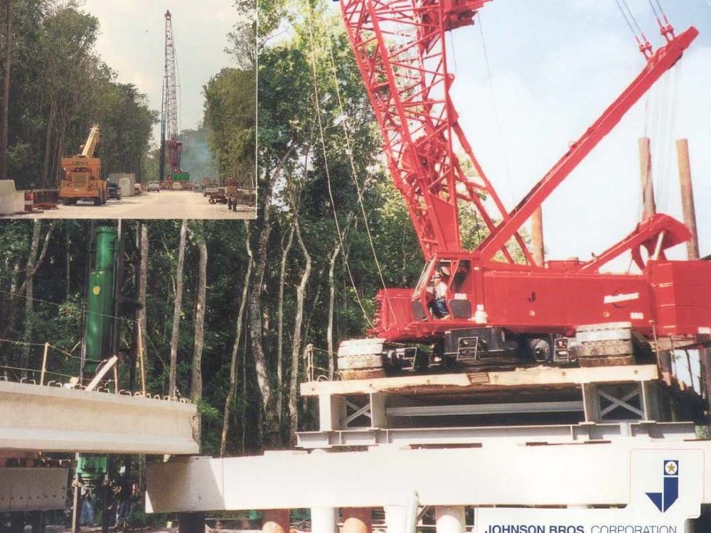 Completed in 2001 by Johnson Bros. Corporation, the SR 600 Reedy Creek Bridge and Roadway project consisted of major roadway and low-level bridge construction through environmentally sensitive Cypress Swamp. Scope of work included Design-Build; maintenance of traffic (MOT); erosion/sedimentation control; prestressed concrete piling; major falsework and trestle placement; sub and superstructure; embankment; barrier walls; retaining walls; bank stabilizations; approach slab and roadway; guardrail systems; rip rap rubble; gabions; and drainage.