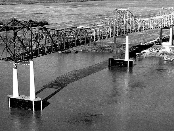 Completed in 1964 by American Bridge, the Sunshine Bridge project involved fabricating and erecting a large cantilevered through truss bridge—one of over a dozen built by the company over the Mississippi River.