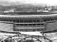 Completed in 1970 by American Bridge, the Three Rivers Stadium project consisted of constructing an oval-shaped enclosed stadium with a major axis of 561′ and a minor axis of 514′. The structure included three levels of concrete and three levels of steel, rising 139′ 4¼” from the playing surface to the top.