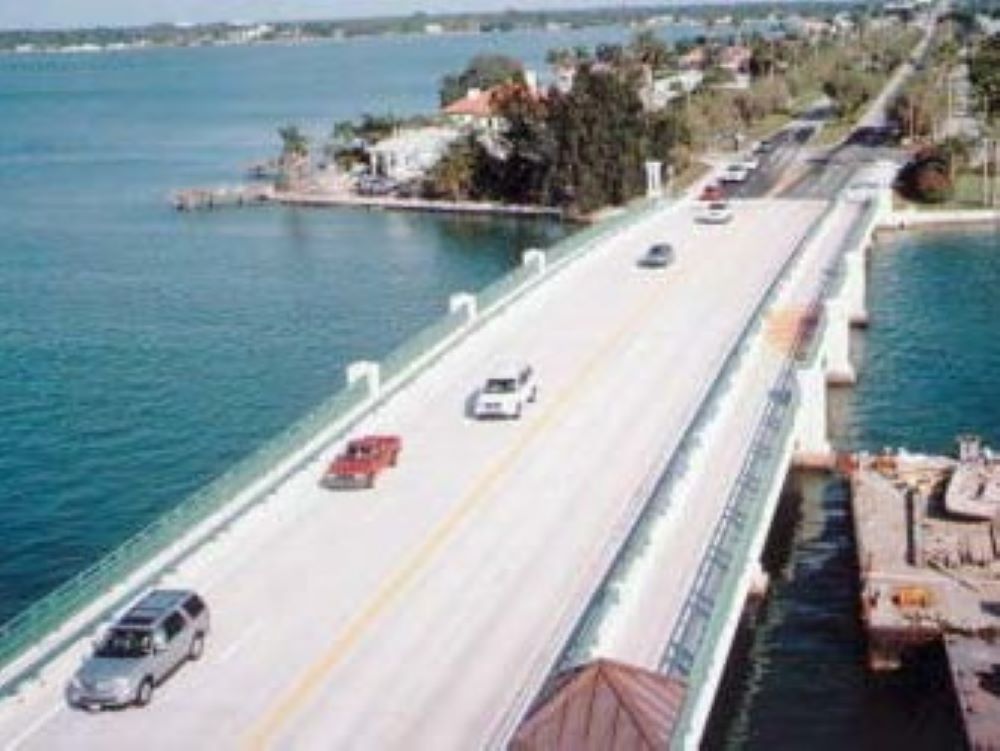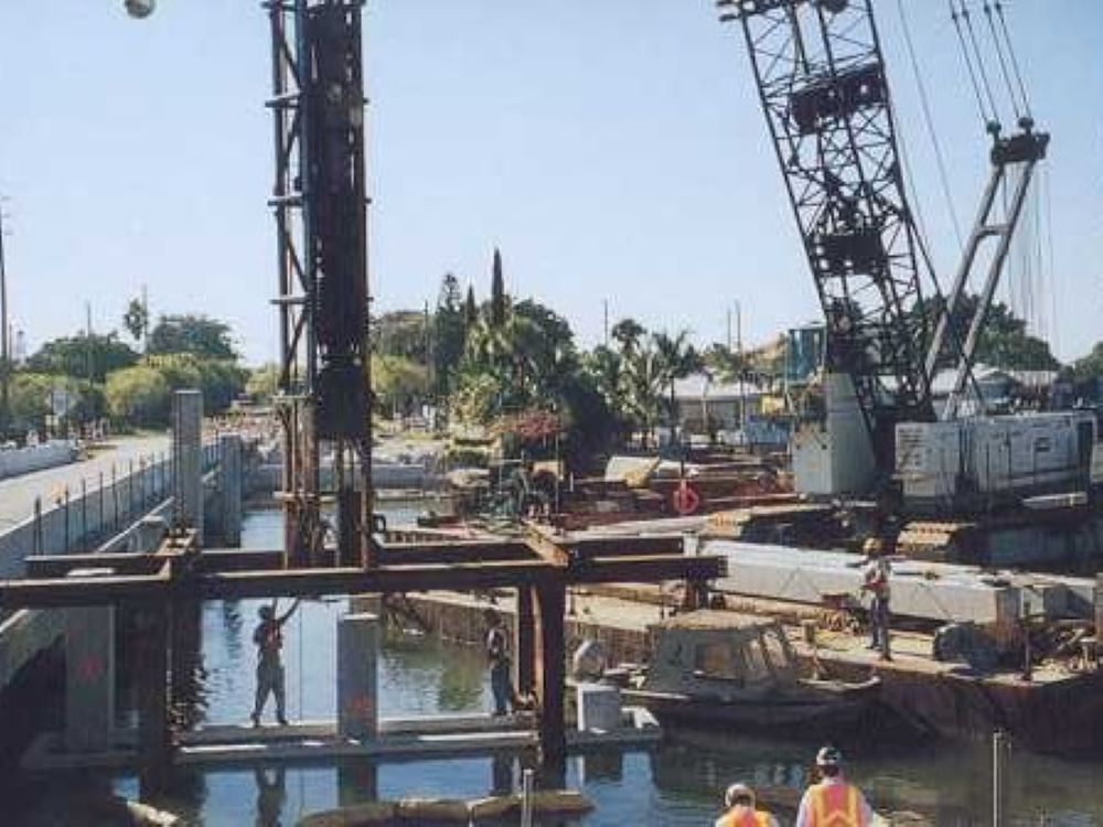 Completed in 2004 by Johnson Bros. Corporation, Treasure Island Causeway East and West Bridge Replacement project included the construction of two flat slab bridges along with associated road work at the Treasure Island Causeway. The bridges were constructed with 24-inch piling with footer tubs to alleviate construction of footers underwater. Bridge decks were precast post tensioned deck slabs with poured deck topping. All construction took place from barges.