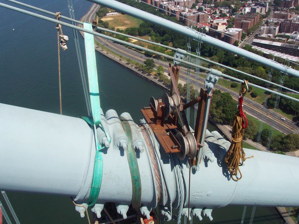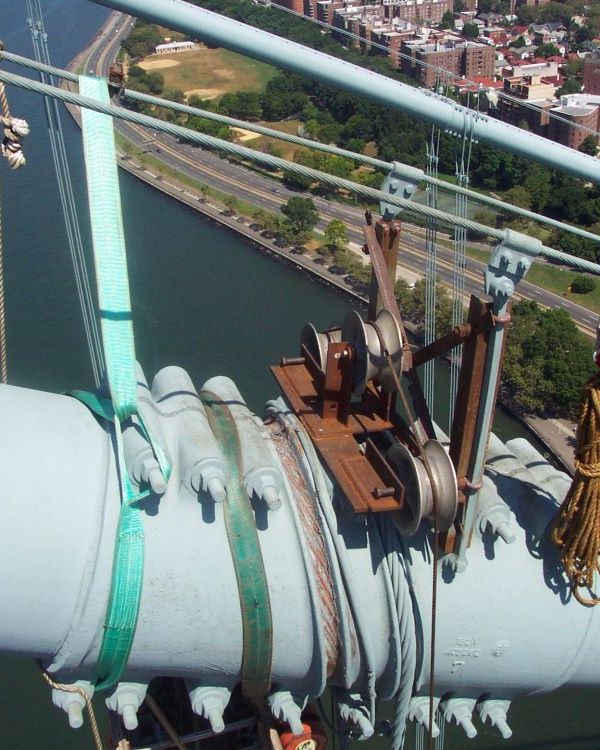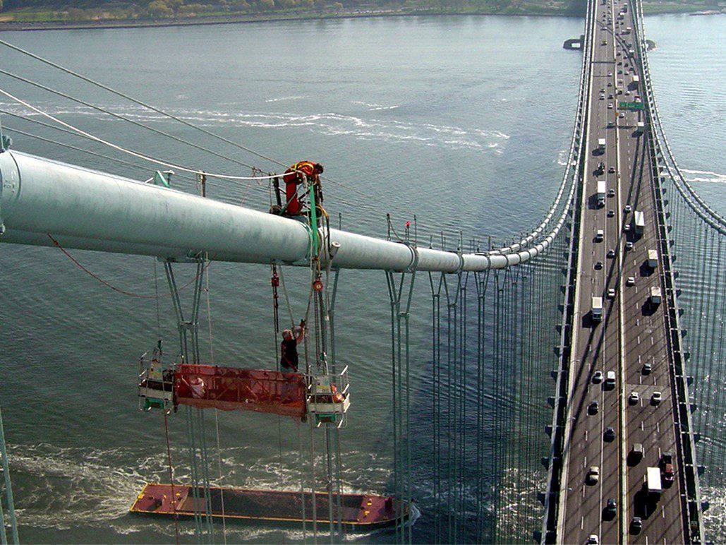 Completed in 2005 by American Bridge, the Verrazano Narrows Bridge Suspender Rope Replacement project involved removing, replacing, and testing four suspender ropes at three locations on the twelve-lane suspension bridge, along with testing existing ropes and submitting test reports.