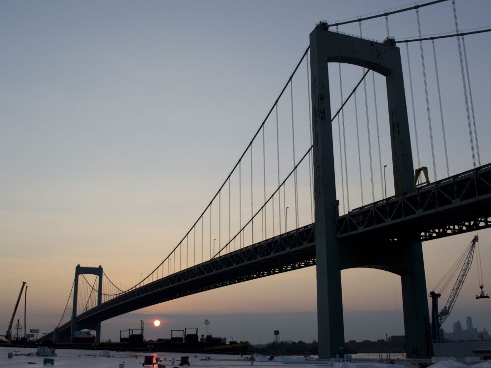 Completed in 2014 by American Bridge, the Walt Whitman Bridge Deck Replacement project involved rehabilitating a seven-lane suspension bridge across the Delaware River. Work included replacing the deck with a steel grid, installing new signal gantries, lateral braces, stringers, a movable barrier system, and strengthening the floor truss. Additionally, new bearings and finger joints were installed. Equipment used included hydraulic and overhead cranes, a compressor, and a truck attenuator.
