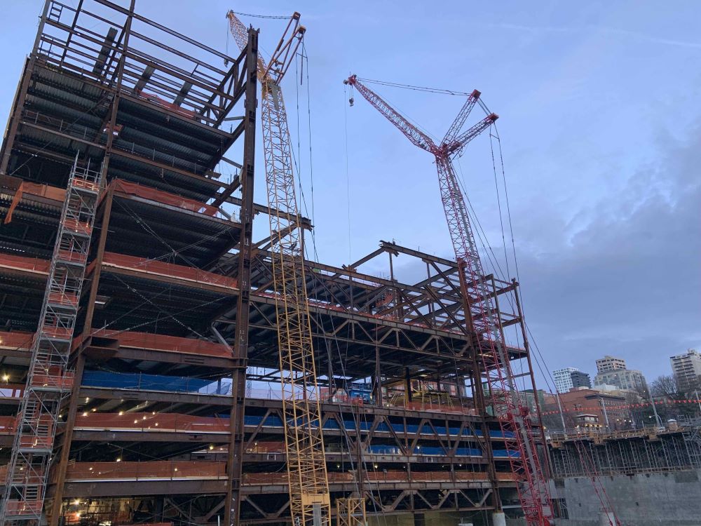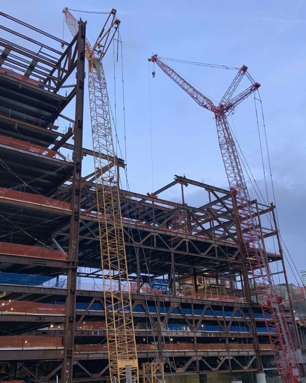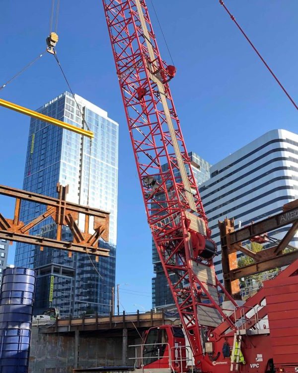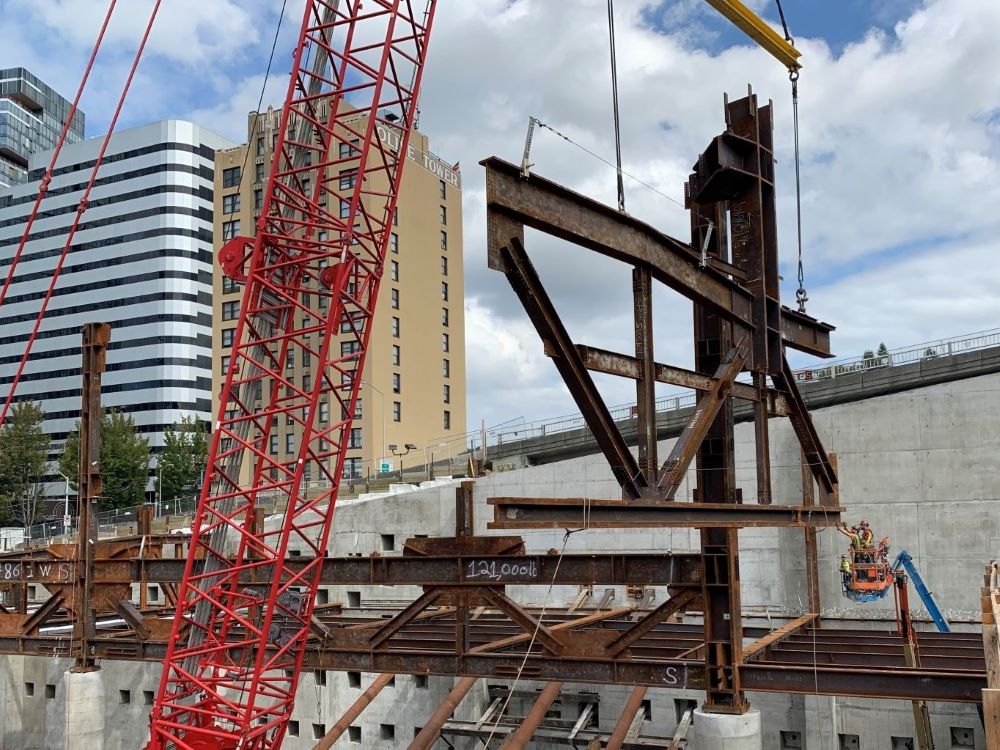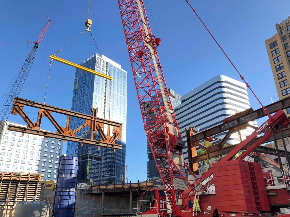 Completed in 2022 by American Bridge, the Washington State Convention Center Addition project involved constructing a 1.5 million square-foot expansion, doubling the facility’s capacity. The $1.7B Summit includes a ballroom, exhibit hall, and flex space. American Bridge, as a subcontractor to Clark/Lewis Joint Venture, supplied and erected 22,000 tons of structural steel, 1.4 million square feet of metal decking, pre-engineered metal stairs, buckling restrained braces, and miscellaneous metal items.