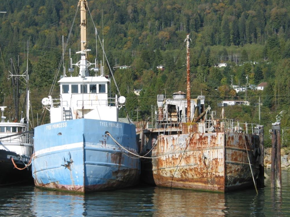 Built by American Bridge Company at the Ambridge Manufacturing Plant in Ambridge, PA. Laid down, date unknown, by American Bridge, Ambridge, PA. Launched, date unknown. Delivered, date unknown. Placed in service in 1944 as YF-874. Placed out of service, date unknown. Struck from the Naval Register, date unknown. Sold by Defense Reutilization and Marketing Service (DRMS) by Exchange/Sale for scrapping, August 1, 1974. Acquired by Coastal Towing, Vancouver, British Columbia in the mid-1970s, converted to a coastal freighter, renamed MV Tyee Princess Donated to Marine Heritage Society of Vancouver, B.C. by Coastal Towing, date unknown. Current Disposition moored at Marine Heritage Park, Britannia Beach, B.C., as of October 2007.