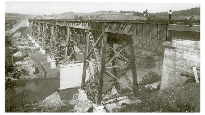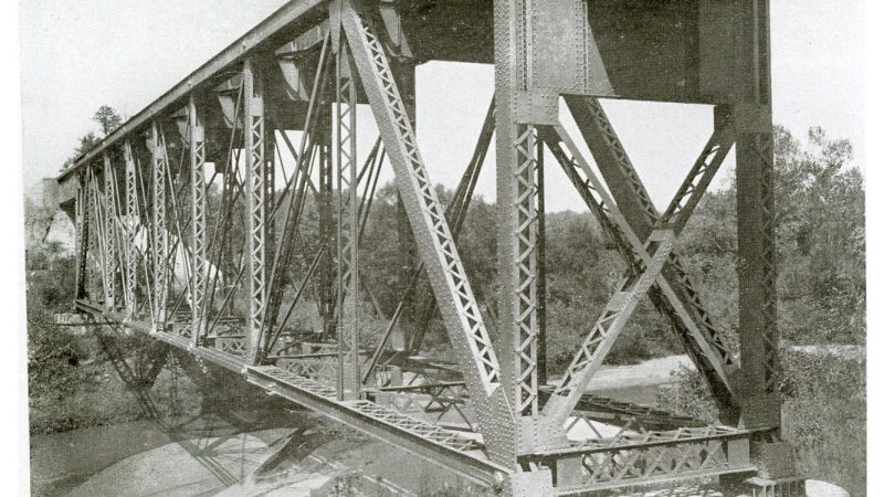 Bull Creek Viaduct https://www.southlandholdings.com/wp-content/uploads/2025/09/Bull-Creek-Viaduct_001-1024x768.jpg 1024 768 Southland Holdings https://www.southlandholdings.com/wp-content/uploads/2025/09/Bull-Creek-Viaduct_001-1024x768.jpgSingle-track deck plate-girder viaduct. Total length, 1,400 ft; alignment, square. Weight 1,500 tons. Project Details Owner: Bessemer & Lake Erie Railroad Location: United States Performed as: American Bridge Company Completion…